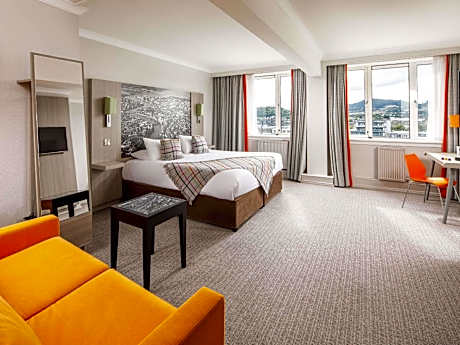 Das Mercure Inverness liegt im Herzen der Innenstadt von Inverness mit Blick auf den Fluss Ness und bietet kostenloses Highspeed-WLAN. Der Bahnhof Inverness liegt 200 m vom Hotel entfernt. Zahlreiche Geschäfte und ein vielfältiges Nachtleben erwarten Sie in der Umgebung. Jedes Zimmer im Mercure Inverness verfügt über ein eigenes Bad, einen Flachbildfernseher, einen Haartrockner sowie Tee- und Kaffeezubehör. Gäste können außerdem den 24-Stunden-Zimmerservice nutzen. Das Restaurant Brasserie serviert moderne Bistroküche mit Blick auf den Fluss. Es gibt eine freundliche Bar und einen Loungebereich. Der Flughafen der Stadt ist 16 km und der legendäre Loch Ness 9 km vom Hotel entfernt.