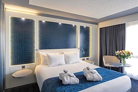 Das Mercure Hotel Biel liegt im Stadtzentrum, neben dem kleinen Schüssenkanal und der Fußgängerzone und ist vom Hauptbahnhof bequem zu Fuß erreichbar. Die Zimmer verfügen über ein eigenes Bad, eine Minibar und einen Haartrockner. Das Hotel bietet kostenfreien Zugang zur Sauna und zum Fitnessbereich im obersten Stockwerk. Alle Zimmer sind klimatisiert und verfügen über kostenfreies WLAN. Genießen Sie saisonale Küche und erlesene Weine aus aller Welt im Restaurant Barrique. Für einen guten Whisky oder Cocktail besuchen Sie die Bar L'heure Bleue, die bis 2:00 Uhr morgens geöffnet ist. Biel liegt etwa 90 Minuten vom internationalen Flughafen Zürich und Genf entfernt. Bern erreichen Sie in nur 30 Autominuten. Alle Flughäfen sind mit Direktzügen vom Bahnhof Biel erreichbar, der nur 10 Gehminuten vom Hotel entfernt ist. Die Drei-Seen-Region (Bielersee, Murtensee und Neuenburgersee) mit ihren unzähligen Weinbergen ist beliebt für Kreuzfahrten, Radtouren und Wanderferien. Elektrofahrräder können auf Anfrage an der Rezeption gemietet werden.