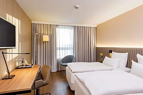 Dieses moderne 4-Sterne-Hotel genießt eine ruhige Lage im Hamburger Stadtteil Altona. Das NH Hamburg Altona bietet kostenloses WLAN, ein Restaurant im spanischen Stil und einen Wellnessbereich mit Panorama-Sonnenterrasse. Die Zimmer im NH Hotel Hamburg Altona sind klassisch eingerichtet. Jedes Zimmer verfügt über Sat-TV, einen Schreibtisch und ein eigenes Bad. Norddeutsche und mediterrane Spezialitäten werden im hellen Restaurant Navarra serviert. Die Bar serviert köstliche Drinks. Gäste können Sportveranstaltungen auf dem großen Bildschirm verfolgen oder draußen auf der Terrasse entspannen. Die Bushaltestelle Bornkampsweg befindet sich gegenüber dem Hotel. Die Barclaycard Arena und das Musical Theater Neue Flora sind nur 2 Haltestellen entfernt. Einige gebührenpflichtige Parkplätze stehen am NH Altona zur Verfügung, und eine Tiefgarage kann gegen eine tägliche Gebühr genutzt werden. Das Hotel liegt 2 Minuten von der Autobahn A7 und 12 Autominuten von der Hamburger Innenstadt entfernt.