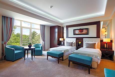 At Qafqaz Thermal & Spa Hotel, exceptional service and top-notch amenities create a memorable experience for guests.Complimentary internet access is available in the hotel to ensure you stay connected during your visit.Arrange your trips to and from the airport using the hotel's convenient transportation services booking. Discover the wonders of Gabala with ease by utilizing the services provided by taxi and car hire. For guests with their own vehicle, parking facilities are provided. Continuously receive the support you require through front desk amenities such as concierge service, express check-in or check-out, luggage storage and safety deposit boxes. Chilly nights become more delightful than balmy ones, as you snuggle near the hotel's inviting hearth.Always look your best in your preferred attire with the dry cleaning service and laundry service provided at Qafqaz Thermal & Spa Hotel.Craving relaxation? In-room amenities such as 24-hour room service, room service and daily housekeeping allow you to maximize your time spent inside the room. Additionally, you can obtain minor travel essentials and miscellaneous items at the convenience stores without departing from the Qafqaz Thermal & Spa Hotel. Due to health concerns, smoking is strictly prohibited within the entire premises of hotel. For the health and well-being of all guests and staff, smoking is restricted exclusively to assigned zones.Accommodations come equipped with all the conveniences required for a restful night's slumber. A selection of rooms feature blackout curtains and air conditioning to ensure your comfort and convenience. A few accommodations at Qafqaz Thermal & Spa Hotel also include unique design elements like a balcony or terrace. A number of rooms feature television for guest amusement and enjoyment.In certain rooms, the hotel offers visitors access to a refrigerator, a coffee or tea maker and mini bar.In the hotel, certain guest bathrooms come equipped with essential bathroom amenities, such as a hair dryer and toiletries, ensuring a comfortable stay for guests. A delightful breakfast is the perfect way to begin your day, and at Qafqaz Thermal & Spa Hotel, you can always indulge in a scrumptious meal on-site. Allow your journey to be free from the pangs of hunger! On-site eateries offer delicious and accessible meal choices. An evening spent at hotel's bar can offer as much enjoyment as venturing out with your fellow travelers.Are you inclined to prepare your own dishes? You will surely appreciate having the on-site BBQ facilities available.At Qafqaz Thermal & Spa Hotel, guests can take pleasure in the delightful recreational amenities provided for their entertainment.At the hotel, a wide range of enjoyable activities ensures that there's never a dull moment during your visit. Don't miss out on the easily reachable beach in the vicinity. Conclude your days in complete tranquility by paying a visit to massage, hot tub, steam room, spa and sauna for ultimate relaxation. At Qafqaz Thermal & Spa Hotel, a wide array of amenities guarantees a fulfilling experience throughout your visit. Make your holiday truly memorable by taking a rejuvenating plunge into the pool.At the hotel fitness center, you have the option to engage in your daily exercise routine or simply alleviate your jet lag by breaking a sweat.