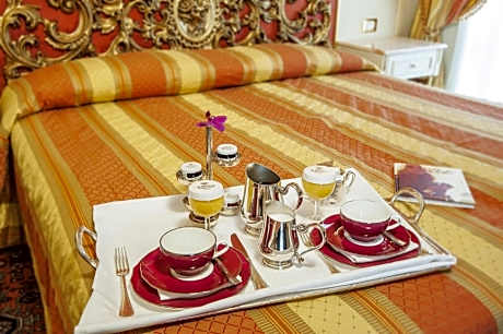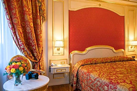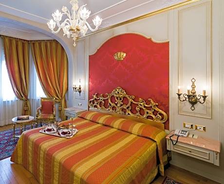 Das Hotel Regina Palace ist ein majestätisches Jugendstilgebäude mit eleganter Inneneinrichtung im klassischen Stil und einem großen Garten mit Pool. Es liegt direkt am Ufer des Lago Maggiore in Stresa. Die Zimmer und Aufenthaltsräume sind alle mit antiken Möbeln, Teppichen und historischen Kronleuchtern eingerichtet und vermitteln ein Gefühl von Geschichte und Adel. Die Zimmer blicken entweder auf den Garten oder den See und einige verfügen zudem über eine Whirlpool-Badewanne. Dieses 4-Sterne-Hotel bietet einen gut ausgestatteten Wellnessbereich mit Sauna, Türkischem Bad und Innenpool in einer Grotte. Im Außenbereich finden Sie auch einen Tennisplatz und eine möblierte Terrasse am Pool. Das Restaurant Liberty serviert lokale Gerichte in einem sehr eleganten Speisesaal, während das Restaurant Charleston auf gehobene Küche spezialisiert ist. Der Speisesaal verfügt über große Fenster mit Blick auf den Lago Maggiore und im Sommer können Sie im Freien speisen. Das Regina Palace liegt 600 m vom Bahnhof Stresa entfernt. Die Autobahnausfahrt der A26 erreichen Sie in 10 Fahrminuten.