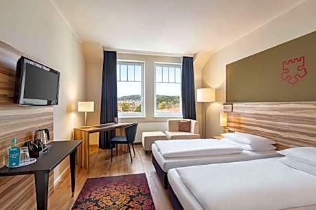 Das Vienna House by Wyndham Thüringer Hof Eisenach liegt in Eisenach, 9 Gehminuten von der Automobile Welt Eisenach entfernt und bietet Unterkünfte mit einem Fitnesscenter, Privatparkplätzen, einer Terrasse und einem Restaurant. Das Hotel mit Bar liegt in der Nähe mehrerer bekannter Sehenswürdigkeiten, etwa 7 Gehminuten vom Bahnhof Eisenach, 650 m vom Lutherhaus und 6 Gehminuten vom Bachhaus Eisenach entfernt. Kostenloses WLAN ist in allen Bereichen verfügbar und die Wartburg ist 4,3 km entfernt. Die Zimmer im Hotel verfügen über einen Kleiderschrank. Einige Zimmer des Vienna House by Wyndham Thüringer Hof Eisenach bieten einen Safe. Die Zimmer verfügen über ein eigenes Bad mit Badewanne und Haartrockner. Die Zimmer sind mit einem Schreibtisch und einem Flachbild-TV ausgestattet. Als Gast des Vienna House by Wyndham Thüringer Hof Eisenach können Sie ein Buffet oder ein kontinentales Frühstück genießen. Die Mitarbeiter an der Rezeption sprechen Deutsch und Englisch und stehen Ihnen rund um die Uhr mit Informationen zur Verfügung. Schloss Friedenstein und der Hauptbahnhof Gotha liegen jeweils 37 km vom Hotel entfernt. Der Flughafen Erfurt-Weimar ist 67 Kilometer entfernt.