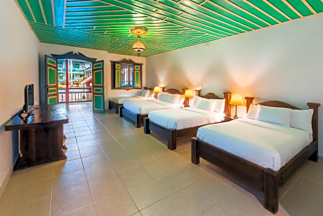 The Hotel Decameron Las Heliconias is located in Quimbaya-Quindio in one of the most representative regions of the Colombian coffee growing area. It has an outdoor pool, a restaurant. This all-inclusive hotel offers its guests rooms that include cable TV, a safe and linens. The private bathroom will provide toiletries and towels. Guests can also use the facilities and services at the Hotel Decameron Panaca, located within a 15-minute drive. Transportation is included. Featuring the characteristic local architecture of old coffee haciendas, Decameron Las Heliconias’ restaurant serves an international-style buffet at La Hacienda Restaurant. El Rincón de los Recuerdos and La Herrería are the other two available restaurants offering à la carte services. The property has 3 bars on site and a snack station. Other facilities available include tennis courts, a fitness center, nightclub, and a children's playground. Currency exchange services, a golf course and volleyball courts are also at hand. Guests will be able to attend Sunday mass at this hotel.