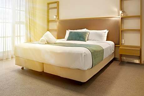 Indulge in a Superior room, King bed with en-suite featuring spa bath & separate shower, also featuring a beautifully designed kitchenette. Additional features are private balcony, flat screen TV, Free Wifi internet anywhere in the hotel, work desk, reverse cycle air conditioning & heating, lounge area with a couch. Rates are for 2 people. Extra guests can be accommodated at additional cost on the sofa bed. Our superior Spa Suites are located on Levels 1 to 4 of the hotel and views will depend on the availability of the rooms at the time of booking. Note: All spa and wellness experiences are not included in the room rate and must be pre-booked seperately.