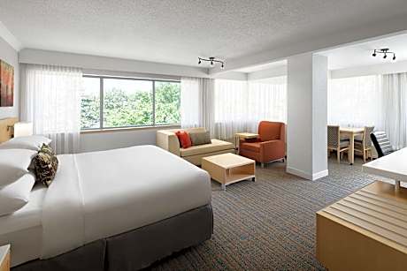 Featuring 2 indoor pools with a 131 foot water slide, this comfortable hotel offers on-site fine dining near South Calgary's shopping and entertainment district. A cable TV is available in each guest room. Free WiFi is available. A microwave, refrigerator, and coffee machine are available in the air-conditioned rooms at Delta Calgary South. A spacious work desk and seating area are provided. A private bathroom includes a hair dryer and free toiletries. Guests can enjoy the 24-hour fitness facility boasting cardiovascular equipment, free weights and more. Calgary city center is 20 minutes' drive away from Delta Calgary South. The University of Calgary is 9.9 mi away.