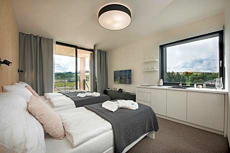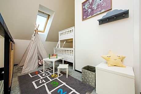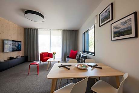 Comfortable Accommodations Demänová Rezort in Liptovský Mikuláš offers family rooms with mountain views, balconies, and private pools. Each room includes a kitchenette, free WiFi, and modern amenities. Wellness and Leisure Guests can relax in the spa and wellness center, swim in the pool with a view, or unwind in the sauna. The resort features a fitness center, sun terrace, and indoor and outdoor play areas. Dining Experience The family-friendly restaurant serves Indian, Italian, and local cuisines, including vegetarian and gluten-free options. Breakfast includes warm dishes, fresh pastries, and a variety of beverages. Activities and Location Located 34 mi from Poprad-Tatry Airport, the resort is near Demänovská Ice Cave (2.9 mi), Aquapark Tatralandia (5 mi), Jasna (7.5 mi), and Strbske Pleso Lake (30 mi). Winter sports are available in the surrounding area.