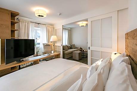 Located directly next to the ski slopes, the 4-star superior Hotel Unterschwarzachhof is located in the center of Hinterglemm. This stylish hotel offers refined cuisine and an extensive spa with an outdoor and indoor swimming pool. The luxurious 4.9 ft² spa offers different types of saunas, a steam bath, an outdoor hot tub, differently themed relaxation rooms, various hay baths and a whole range of massages and beauty treatments. The elegant Alpine interior with an extensive use of light wood paneling is enriched with modern design and colorful fabrics. A fireplace adds to the atmosphere of the Unterschwarzachhof’s bar and lounge. The comfortable and spacious rooms feature cable TV and free Wi-Fi. Many of them offer a balcony. Some also feature a stove and a spa bath in the bathroom. The á la carte restaurant is divided into many smaller wood-paneled dining areas. It specializes in modern Austrian and international cuisine. It mostly uses organic produce from the hotel’s own farm. The hotel organizes day care and numerous activities for children of all age groups.