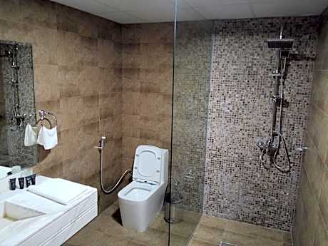 Located in Ras al Khaimah, Desert Inn Resort and Camp provides free WiFi, and guests can enjoy an outdoor swimming pool, a garden and a shared lounge. Fitted with a terrace, the units offer air conditioning and feature a flat-screen TV and a private bathroom with shower and free toiletries. There's also a fridge, minibar and an electric tea pot. Al Hamra Mall is 12 miles from the lodge, while Al Hamra Golf Club is 13 miles away. Ras Al Khaimah International Airport is 14 miles from the property.