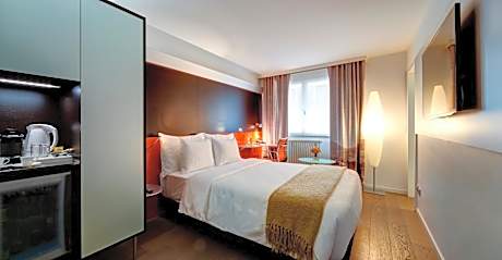 The Design Hotel F 6 is ideally located on a calm street near the center of Geneva, 1969 feet from Lake Geneva and 2625 feet from the Cornavin train station. Free WiFi is available. All of the bright rooms feature a Nespresso coffee machine, an iPhone and iPod charger, a satellite flat-screen TV and a bathroom. Every morning a generous buffet breakfast is served in the breakfast lounge. Gluten-free options are available for a surcharge. A fitness center with a personal coach. A sauna and Turkish bath are available (for a supplement), as well as meeting rooms of various sizes are further features of the hotel.