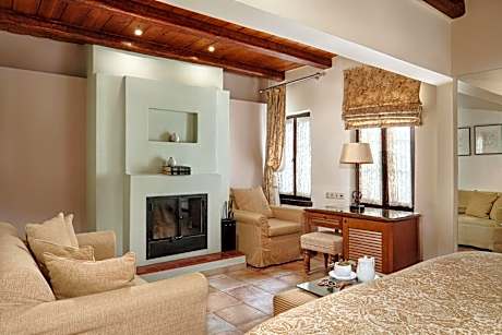 Classically furnished with earthy tones and a modern bathroom. Includes an LCD satellite TV. For rooms with a fireplace, its use is included in the room rate.