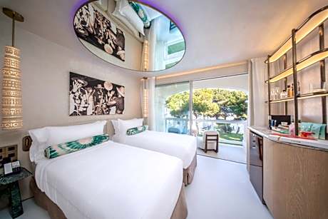 Set around an outdoor pool, and offering panoramic views of the Mediterranean Sea, Destino Five Ibiza - 5-Star Grand Luxe Resort is set on the hillside in Cap Martinet. Talamanca Beach is a 5-minute walk away. Air-conditioned rooms feature a stylish, white décor and large windows. Each one includes free Wi-Fi, a TV, safe, mini-bar and a private bathroom. Destino Five Ibiza - 5-Star Grand Luxe Resort's restaurant offers fusion cuisines of Mediterranean and Peruvian fusion cuisine and Greek specialty cuisine. It uses fresh, local products. The pool is surrounded by palm trees and hammocks, and poolside massages are available. There is also a large hot tub and hot yoga classes. Pacha Ibiza Club is a 20-minute walk from the resort, while Ibiza city center is around 2.2 mi away. Ibiza Port can be reached in a 10-minute drive, and boats to Formentera, Mallorca and Valencia leave from here.