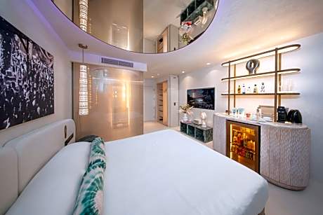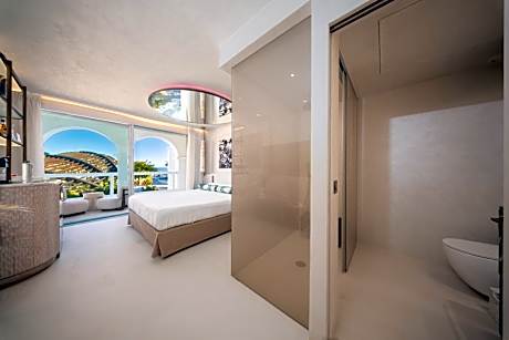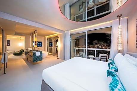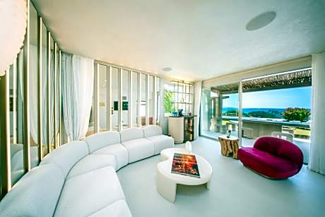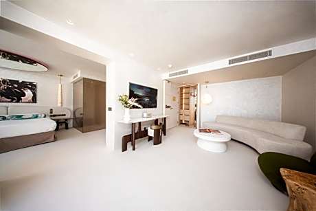 Set around an outdoor pool, and offering panoramic views of the Mediterranean Sea, Destino Five Ibiza - 5-Star Grand Luxe Resort is set on the hillside in Cap Martinet. Talamanca Beach is a 5-minute walk away. Air-conditioned rooms feature a stylish, white décor and large windows. Each one includes free Wi-Fi, a TV, safe, mini-bar and a private bathroom. Destino Five Ibiza - 5-Star Grand Luxe Resort's restaurant offers fusion cuisines of Mediterranean and Peruvian fusion cuisine and Greek specialty cuisine. It uses fresh, local products. The pool is surrounded by palm trees and hammocks, and poolside massages are available. There is also a large hot tub and hot yoga classes. Pacha Ibiza Club is a 20-minute walk from the resort, while Ibiza city center is around 2.2 mi away. Ibiza Port can be reached in a 10-minute drive, and boats to Formentera, Mallorca and Valencia leave from here. License Number(s): HPM2643