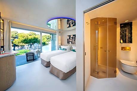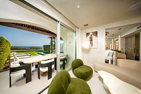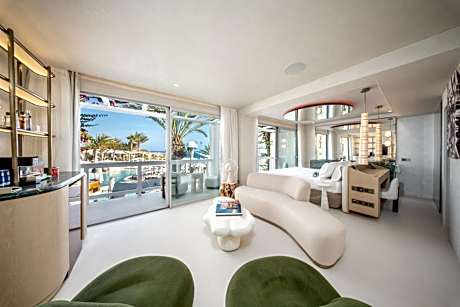 Set around an outdoor pool, and offering panoramic views of the Mediterranean Sea, Destino Five Ibiza - 5-Star Grand Luxe Resort is set on the hillside in Cap Martinet. Talamanca Beach is a 5-minute walk away. Air-conditioned rooms feature a stylish, white décor and large windows. Each one includes free Wi-Fi, a TV, safe, mini-bar and a private bathroom. Destino Five Ibiza - 5-Star Grand Luxe Resort's restaurant offers fusion cuisines of Mediterranean and Peruvian fusion cuisine and Greek specialty cuisine. It uses fresh, local products. The pool is surrounded by palm trees and hammocks, and poolside massages are available. There is also a large hot tub and hot yoga classes. Pacha Ibiza Club is a 20-minute walk from the resort, while Ibiza city center is around 2.2 mi away. Ibiza Port can be reached in a 10-minute drive, and boats to Formentera, Mallorca and Valencia leave from here.