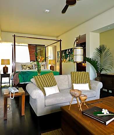 Located on the island of Praslin, surrounded by lush forests and the Indian Ocean, Dhevatara Beach Hotel is a boutique hotel with 10 rooms and free Wi-Fi. It features an outdoor ionized pool and a spa center. The property is exclusively Adults Only. Dhevatara Beach Hotel has individually designed suites with elegant handmade furniture from different countries inspired by nature, which provide a very relaxing atmosphere. Each air-conditioned suite has an outdoor seating area and a private bathroom with Deluxe NUXE-PARIS bath amenities. Overlooking the eclectic water garden, the property’s à la carte restaurant serves fusion cuisine with Mediterranean, Asian, and Creole flavors. The open-air lounge bar offers fine wines, high tea, and exotic cocktails. Guests can relax in Dhevatara Beach’s spa or choose from various activities, including canoeing and snorkeling. This beachfront boutique hotel offers free private parking on-site.