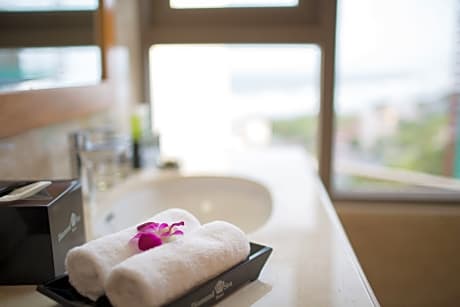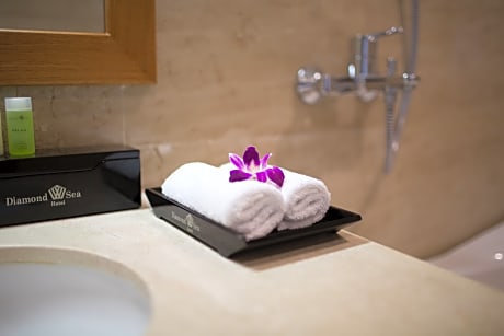 Diamond Sea Hotel provides flawless service and all the necessary facilities for visitors. Remain linked during your visit by utilizing the complimentary internet access available. Prior to your check-in date, you can arrange airport transportation services, guaranteeing a seamless and efficient experience for both arrival and departure.Services offered by taxi, car hire and shuttle at the hotel ensure effortless exploration of Da Nang.The hotel offers complimentary parking for guests who arrive with their own mode of transport. Effortlessly plan your daily activities and travel requirements with concierge service, express check-in or check-out, luggage storage and safety deposit boxes provided by the front desk services.Securing top-notch tickets and reserving prime dining spots become effortless through assistance from the hotel's tours. For extended visits or whenever required, the dry cleaning service and laundry service ensures your preferred travel garments remain clean and accessible. During leisurely days and evenings, in-room amenities such as room service and daily housekeeping enable you to maximize your stay in the room.The hotel is completely smoke-free. In limited designated zones, smoking is exclusively permitted.Crafted for coziness, every guestroom provides an array of features, guaranteeing a tranquil night's sleep while maintaining the level of comfort. For a more enjoyable stay, select rooms at hotel are equipped with linen service and air conditioning. At Diamond Sea Hotel, guests can choose from a variety of room configurations, some of which feature separate living room and balcony or terrace. For certain chosen rooms, guests can enjoy in-room amusement like television and cable TV as a part of their stay. Rest assured that your hydration needs will be met, as some guestrooms are equipped with a refrigerator, bottled water, instant coffee, instant tea and mini bar. It is worth noting that certain guest bathrooms feature a hair dryer, toiletries, bathrobes and towels for your convenience. Begin your day on a delightful note with a scrumptious complimentary breakfast, consistently served at Diamond Sea Hotel.Begin your holiday mornings right with your essential cup of coffee, offered daily at the cafe on-site.During your visit, indulge in a range of delightful culinary choices at hotel to enhance your experience. Enjoy an entertaining evening alongside your fellow travelers at hotel's very own bar and nightclub. During your stay at hotel, an array of engaging activities and amenities guarantees a delightful experience.During your stay, the hotel provides direct access to a beach, ensuring you remain near the sea throughout your visit.Treat and spoil yourself by stopping at massage, steam room, spa and sauna for a memorable experience.Begin your holiday perfectly by taking a plunge into the swimming pool. Eliminate those holiday calories by stopping by hotel and making use of their well-equipped exercise amenities.