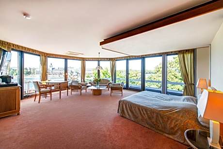 Classic-style room offering a TV, mini-bar and views of the Rhine.