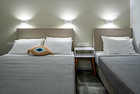 Cycladic-style room with air conditioning, TV, telephone and mini fridge. A safe is also available. Please note that children up to 12 years old are offered free breakfast.