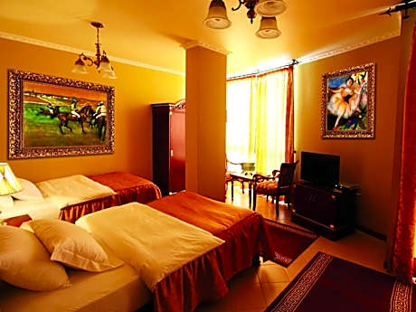Dinasty Residence is located in the center of Tirana and features a lavishly decorated restaurant and a bar with summer terrace. Free private parking is also available. All rooms at Dinasty Residence include a private bathroom, LCD satellite TV, a balcony and free Wi-Fi. Suites feature a patio with a view of the nearby Tirana Park. Traditional Albanian dishes and drinks, as well as international cuisine are served in The Tavern Restaurant. The hotel also serves a breakfast buffet. Skanderbeg Square is a 15-minute walk from the hotel and features the Piramida. The National Art Gallery is only 0.6 mi away. The hotel offers a discounted shuttle service to Tirana International Airport, which is a 15-minute drive away.