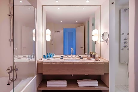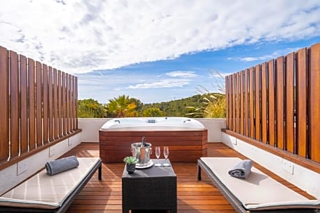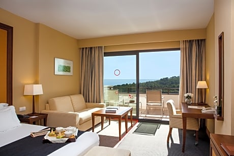 Overlooking the Mediterranean sea and the Terramar Golf Club, Eurostars Sitges is 1.2 mi from the beach in Sitges. Free WiFi and free parking are available. The air-conditioned rooms feature a private terrace with views, a flat-screen TV, a laptop safe, a mini-bar, a tea/coffee maker and a private bathroom with a hairdryer and bathrobes. The property provides restaurants, bars, a chill-out lounge and a boutique restaurant. Guests can enjoy à la carte fine wine, dining, snacks and cocktails. Eurostars Sitges offers a wellness center with a spa, an indoor pool, a hot tub, a sauna and a steam bath for an extra charge. Therapies and beauty treatments are also available. A 24-hour reception and a tour desk services are provided at the property. Guests have free access to the 24-hour fitness room. Sitges center is 2.2 mi away from the property. Guest can reach Eurostars Sitges within 25 minutes by train from Barcelona International Airport and within 50 minutes from Barcelona city center.