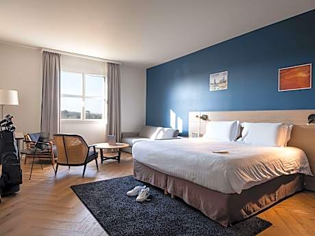 Set amid verdant countryside in the heart of the historic Chantilly region, this large hotel is just 40 minutes from Paris and 25 minutes from Roissy Charles de Gaulle airport. Bright, with a contemporary style, all the Mercure Chantilly Resort & Conventions hotel's rooms open on to the surrounding forest or to a private golf course. Guest rooms are equipped with LCD TV and Wi-Fi internet access. For your entertainment you have a choice of the Veranda restaurant, 2 bars, terrace and 2 swimming pools. With the fitness center and 18-hole golf course, Mercure Chantilly Resort & Conventions is the ideal destination for your next leisure getaway or holiday stay. Guests can enjoy a 15% discount for the golf course, upon request.