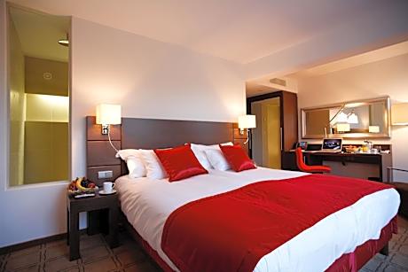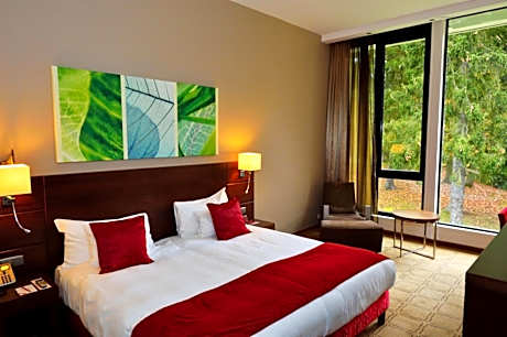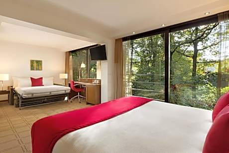 Dolce La Hulpe combines a quiet forest setting with luxurious spa facilities. This hotel offers rooms with modern décor, free Wi-Fi and views over the Sonian forest. Brussels is 25 minutes away by car. Each of the rooms at Dolce La Hulpe Brussels includes flat-screen cable TV, air conditioning and VOIP telephone. They also feature tea and coffee making facilities. The Royal Waterloo Golf Club is a 15-minute drive from Brussels Dolce La Hulpe. The town of Waterloo is a 10-minute drive away. Brussels Airport is 12 mi from the hotel. Spa Cinq Mondes is a unique spa complex offering a wide variety of body and wellness treatments. Bicycle rental is available on site. Guests can make free use of the tennis court, sauna, indoor pool and wellness center. The Wellness center is only accessible upon reservation for 1 hour daily. This design hotel also includes 1 restaurant with terrace. Guests can enjoy a cocktail or bar snacks at the Badian lounge bar which also has a library area.