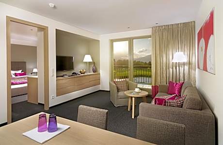 This spacious suite consists of 1 living room, 1 separate bedroom and 1 bathroom with a bath and free toiletries. The suite provides soundproof walls, a mini-bar, a tea and coffee maker, a flat-screen TV with satellite channels, as well as garden views. The unit offers 1 bed.