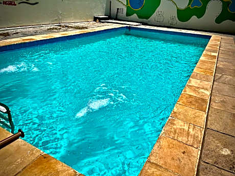 Dom Alberto Hostel has an outdoor swimming pool, garden, a shared lounge and bar in Corumbá. Featuring family rooms, this property also provides guests with a grill. The property has evening entertainment and a shared kitchen. At the hostel, all rooms include a patio. The rooms have air conditioning, and some accommodations at Dom Alberto Hostel have a balcony. All rooms will provide guests with a microwave. A continental breakfast is available at the accommodation. Corumba International Airport is 1.2 miles from the property.