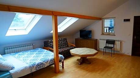 Featuring mountain views, DOM NA SKARPIE in Mszana Górna features accommodations, a garden, and barbecue facilities. There's a private entrance at the condo hotel for the convenience of those who stay. There's an outdoor fireplace and guests can access free Wifi and free private parking. Featuring a fully equipped kitchen with an oven and a microwave, each unit also comes with a satellite flat-screen TV, ironing facilities, wardrobe, and a seating area with a sofa. Every room is fitted with a coffee machine and a private bathroom, while certain rooms have a terrace and some have garden views. At the condo hotel, every unit is fitted with bed linen and towels. You can play table tennis and darts at the condo hotel, and the area is popular for skiing and hiking. Walking tours is possible within the area and DOM NA SKARPIE offers ski storage space. Bania Thermal Baths is 31 miles from the accommodation. John Paul II International Kraków–Balice Airport is 42 miles from the property.