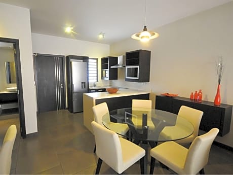 Each air-conditioned apartment features a kitchenette with a microwave, stove and a refrigerator. It includes a dining area and lounge with a flat-screen TV. The private bathroom has a bath and a shower.
