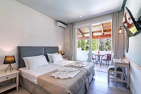 Dominoes Corfu is a recently renovated condo hotel in Ipsos where guests can make the most of its outdoor swimming pool, garden, and bar. This property offers access to a balcony, table tennis, free private parking, and free Wifi. Extra facilities include luggage storage space, meeting rooms, a tour desk, and daily room service. The condo hotel will provide guests with air-conditioned units with a desk, a coffee machine, a minibar, a safety deposit box, a flat-screen TV, a terrace, and a private bathroom with a walk-in shower. At the condo hotel, all units are soundproof. At the condo hotel, each unit is fitted with bed linen and towels. À la carte and continental breakfast options with warm dishes, local specialities, and fresh pastries are available. Guests are welcome to eat at the on-site modern restaurant, which is open for dinner, lunch, brunch, and cocktails. For guests with children, the condo hotel features outdoor play equipment and a baby safety gate. Both a bicycle rental service and a car rental service are available at Dominoes Corfu. Ipsos Beach is a 7-minute walk from the accommodation, while Port of Corfu is 7.9 miles away. Corfu International Airport is 8.7 miles from the property, and the property offers a paid airport shuttle service.