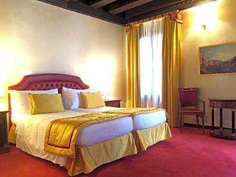 Dona Palace is a 4-star boutique hotel 2 minutes' walk from Saint Mark's Square in central Venice. Facing the Ducal Palace's canal, it offers elegant Venetian-style rooms with an LCD satellite TV, mini-bar and free Wi-Fi. Set in a 14th-century building, rooms and suites at Hotel Dona Palace have a classic design with wood furniture and carpeted floors. Each one has air conditioning and a private bathroom with hairdryer and toiletries. Some are fitted with wooden floors. An American breakfast is served each morning. The hotel has its own internal garden, where drinks are served in summer, and a landing dock for water taxis. A pleasant 5-minute walk will take you to the Bridge of Sighs.