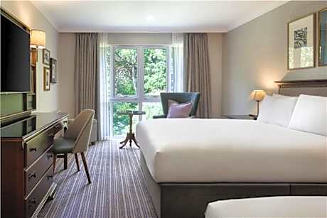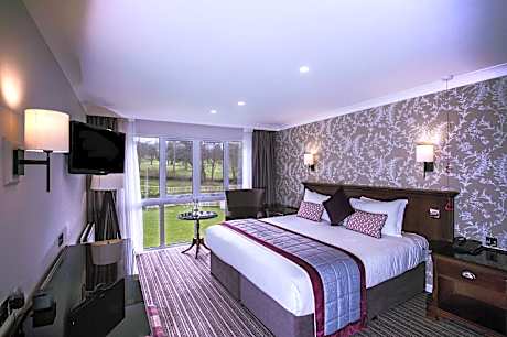 Nestled in the picturesque countryside, DoubleTree by Hilton Cheltenham-Cotswolds is a stunning Georgian manor house surrounded by beautifully landscaped gardens and an ornamental lake. Overlooking Lilley Brook’s 18-hole golf course, the hotel offers complimentary WiFi and ample parking with EV charging, providing a tranquil retreat for both leisure and business travelers. From the moment you arrive, you'll be welcomed with a signature warm chocolate chip cookie. The hotels’ newly refurbished bedrooms have been thoughtfully designed to offer a more luxurious and comfortable stay. Each bedroom features a flat-screen TV, a hospitality tray and private bathrooms with complimentary toiletries. Deluxe rooms include indulgent extra touches including chocolates, bathrobes and scenic garden views. Our spacious suites offer a separate living/dressing room, a sofa bed and a large TV for added comfort. Guests can unwind at the onsite health club, Revive, which features a 15-yard indoor pool, a sauna, a steam room and a hot tub. The newly refurbished gym offers fitness classes and Precor gym equipment, while the health club provides a range of ELEMIS and Natural Spa Factory treatments and wellness packages for ultimate relaxation. There are two eateries at the hotel, serving delicious cooked and continental breakfast each morning, as well as an à la carte dinner menu overlooking the lake and gardens. Also offering specialty teas and coffees, afternoon tea, light lunches, bar snacks and evening meals. For those visiting for business, the hotel provides excellent conference and events facilities including meeting rooms, audio and visual equipment for hire. Ideally located for exploring Cheltenham and the Cotswolds, the hotel is just 4 miles from Cheltenham Racecourse and 5 miles from GCHQ. The charming spa town center is less than 2 miles away, with a convenient bus stop just a 2-minute walk from the hotel. The breathtaking Cotswolds countryside can be reached in just 22 minutes by car. Children up to 18 years old stay free when sharing a room with a paying adult on a room-only rate (using existing bedding). Young guests aged 5 and under enjoy a complimentary breakfast from the buffet, while children aged 10 and under can dine from the dedicated children's menu. For those aged 11 and above, all other menus are available at the displayed prices. Please note that room packages including meals do not cover children's meals.