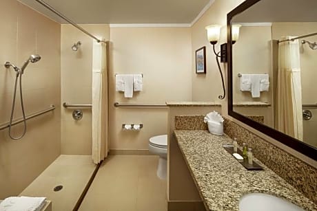 Located in Claremont, California, this hotel is 10 miles from Ontario International Airport and Ontario Mills Mall. The hotel features an outdoor pool and rooms with a refrigerator. The modern rooms offered at Doubletree Hotel Claremont are equipped with a 55-inch, flat-screen TV and WiFi. Each air-conditioned room has a balcony and convenience amenities including a work desk, coffee maker and ironing facilities. Guests can enjoy California Fusion cuisine at The Orchard restaurant or musical entertainment and cocktails at PianoPiano Dueling Lounge Bar. After working out in the gym, relaxation can be found in the hot tub. Claremont Doubletree hotel has a 24-hour business center, multiple meeting rooms and free parking. Less than one mile from the Doubletree guests will find Claremont Golf Course and various college campuses including that of Pomona College.