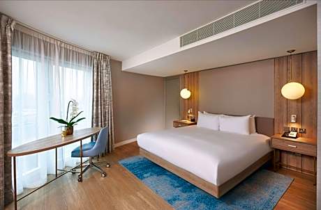 Located on the waterfront, DoubleTree By Hilton London Excel is just 0.5 miles from London City Airport. With a bar and restaurant, and the Docklands Light Railway is only 0.3 miles away. This 4-star hotel offers bright rooms each with free WiFi access, a 40-inch LED TV and a private shower room with complimentary toiletries. Some of the spacious suites feature balconies, with views across the waterfront. This DoubleTree By Hilton London Excel has a Fitness Room with cardio equipment, free for all guests. With superb waterfront views, The Restaurant provides modern Italian cuisine, prepared with the finest ingredients. The Bar offers a relaxing space to enjoy a drink. There is also 24-hour room service available. A hot and cold breakfast buffet serves a range of fruits, home-baked croissants, Fair Trade coffee and a traditional English breakfast. The O2 Arena and Canary Wharf are just a 10-minute train ride away. Closer by, the ExCel Exhibition Center is next door to the hotel.