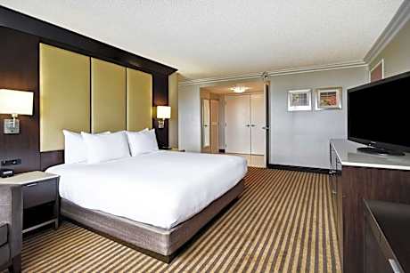 This hotel, 10 minutes from downtown Pleasanton, has easy access to both Interstate 580 and 680. Guests receive free access to a nearby fitness center, Club Sport Ultimate Health Club. All rooms at DoubleTree by Hilton Pleasanton at The Club have 32-inch LCD HD TVs. They include thoughtful amenities like a hairdryer and a tea/coffee maker. The pet-friendly DoubleTree by Hilton features an outdoor pool and hot tub. Its on-site Players Restaurant offers casual dining for breakfast, lunch, and dinner. Guests will appreciate convenient facilities, like room service, a 24-hour business center, and an on-site ATM. The DoubleTree by Hilton Pleasanton at The Club is about 30 minutes from downtown Oakland, and 40 minutes from downtown San Francisco. The Stonebridge Mall is just over a mile from the hotel.