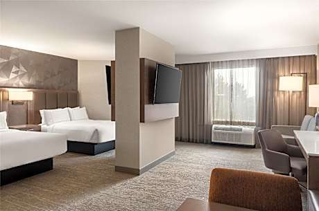 Located 10 minutes’ drive from Bingeman’s Park in Ontario, Canada, this Kitchener hotel offers on-site dining, an indoor pool and a gym. All comfortably furnished rooms include free Wi-Fi. Each room at the DoubleTree by Hilton Kitchener features cable TV with extended channels. Boasting rich wood furnishings and plush bedding, all rooms are equipped with tea and coffee making facilities. Complete with a grand stone fireplace, Arbor Kitchen and Bar serves a variety of American fare including succulent steak, seafood and pasta. An extensive dessert menu is also offered at the restaurant. Guests can enjoy a visit to St. Jacob's Country 25 minutes’ drive from the hotel. The Waterloo Children's Museum is 5.5 mi away. John C. Munro Hamilton International Airport is about 1 hour away and a shuttle can be arranged on request.
