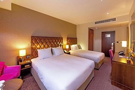 Set in a prime location, DoubleTree by Hilton Hotel London - Marble Arch offers Michelin-starred dining and comfortable rooms just a minute's walk from Oxford Street. Marble Arch Underground Station is just a 2-minute walk away. DoubleTree by Hilton Hotel London - Marble Arch provides well-furnished rooms, featuring satellite TV and private bathrooms with a power shower. Suites also feature their own luxurious lounge. We are thrilled to welcome you to Fire and Spice restaurant at the DoubleTree by Hilton London – Marble Arch, your destination for authentic Indian cuisine! We take pride in bringing you the true flavors of India. A buffet breakfast is also available to guests every morning. Guests can also relax with a drink in the champagne bar. The hotel also benefits from a fitness center. There is a magnificent Georgian staircase and 3 well equipped conference rooms. The nearby Paddington Train Station provides excellent access to the Heathrow Express 15-minute service to Heathrow Airport.