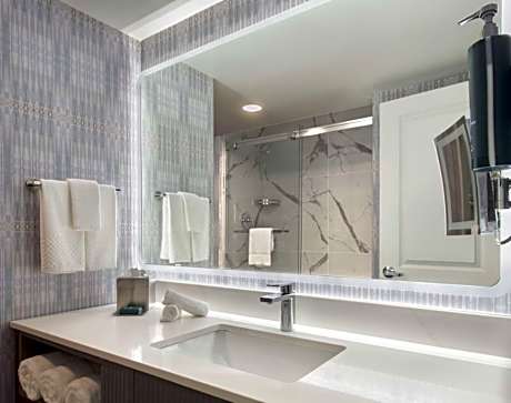 Offering a full-service restaurant, The DoubleTree by Hilton Poughkeepsie is located in Poughkeepsie. Free WiFi access is available and complimentary full hot breakfast is served daily. Featuring a microwave, refrigerator and coffee machine,each room here will provide you with air conditioning. Featuring a shower, private bathroom also comes with a bath and a hairdryer. Guests can enjoy a city view or a river view from the room. Extras include a desk, a safety deposit box and bed linen. A 24-hour front desk welcomes guests to The DoubleTree by Hilton Poughkeepsie, which offers free shuttle service to the train station. Other facilities offered at the property include meeting facilities, luggage storage and dry cleaning. The property offers free parking in its on-site garage. The hotel is 984 feet from Bardavon Opera House, 2.1 mi from Vassar College and 6 mi from Mid Hudson Children's Museum. Westchester County Airport is 45 mi away.
