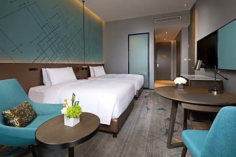 DoubleTree by Hilton Qingdao Oriental Movie Metropolis provides flawless service and all the necessary facilities for visitors.Remain linked during your visit by utilizing the complimentary internet access available. Prior to your check-in date, you can arrange airport transportation services, guaranteeing a seamless and efficient experience for both arrival and departure. Services offered by taxi and car hire at the hotel ensure effortless exploration of Qingdao. The hotel offers complimentary parking for guests who arrive with their own mode of transport.Effortlessly plan your daily activities and travel requirements with concierge service, express check-in or check-out, luggage storage and safety deposit boxes provided by the front desk services. For extended visits or whenever required, the dry cleaning service and laundry service ensures your preferred travel garments remain clean and accessible.During leisurely days and evenings, in-room amenities such as room service and daily housekeeping enable you to maximize your stay in the room.For minor or impromptu requirements, the convenience stores can promptly cater to them without the necessity of stepping out from the hotel.In limited designated zones, smoking is exclusively permitted.Crafted for coziness, every guestroom provides an array of features, guaranteeing a tranquil night's sleep while maintaining the level of comfort.For a more enjoyable stay, select rooms at hotel are equipped with linen service, blackout curtains and air conditioning.At DoubleTree by Hilton Qingdao Oriental Movie Metropolis, a selection of rooms can be found that showcase unique design elements such as a balcony or terrace.For certain chosen rooms, guests can enjoy in-room amusement like daily newspaper, television and in-room video streaming as a part of their stay.Rest assured that your hydration needs will be met, as some guestrooms are equipped with a refrigerator, a coffee or tea maker and mini bar. It is worth noting that certain guest bathrooms feature a hair dryer, toiletries, bathrobes and towels for your convenience.Chosen accommodation prices might include entry to the executive lounge, offering premium services amid an ambiance of refined extravagance. Each morning at DoubleTree by Hilton Qingdao Oriental Movie Metropolis, a scrumptious, homemade breakfast kick-starts the day. During your visit, indulge in a range of delightful culinary choices at hotel to enhance your experience. Experience a fantastic evening effortlessly! Relish an entertaining night without venturing beyond the confines of the bar. During your stay at hotel, an array of engaging activities and amenities guarantees a delightful experience. During your stay, the hotel provides direct access to a beach, ensuring you remain near the sea throughout your visit. Treat and spoil yourself by taking a trip to steam room.Begin your holiday perfectly by taking a plunge into the swimming pool.Eliminate those holiday calories by stopping by hotel and making use of their well-equipped exercise amenities.