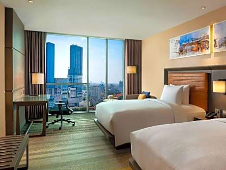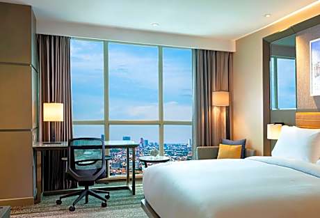 At DoubleTree by Hilton Surabaya, exceptional service and top-notch amenities create a memorable experience for guests. Complimentary internet access is available in the hotel to ensure you stay connected during your visit. Amenities at shuttle offered by DoubleTree by Hilton Surabaya simplify the organization of your excursions, tourist activities, and other adventures in Surabaya.For guests with their own vehicle, parking facilities are provided.Continuously receive the support you require through front desk amenities such as concierge service, luggage storage and safety deposit boxes. At the hotel, utilize the convenient laundry service to maintain your preferred travel attire fresh, allowing you to pack lighter.Craving relaxation? In-room amenities such as room service and daily housekeeping allow you to maximize your time spent inside the room. Accommodations come equipped with all the conveniences required for a restful night's slumber. A selection of rooms at DoubleTree by Hilton Surabaya come furnished with blackout curtains to cater to your needs and comfort.A few chosen rooms are equipped with television and in-room video streaming to ensure guest amusement. In certain rooms, the hotel offers visitors access to a refrigerator and instant tea. DoubleTree by Hilton Surabaya offers a hair dryer, toiletries and bathrobes in the restrooms of specific accommodations. Allow your journey to be free from the pangs of hunger! On-site eateries offer delicious and accessible meal choices.An evening spent at hotel's bar can offer as much enjoyment as venturing out with your fellow travelers. At DoubleTree by Hilton Surabaya, guests can take pleasure in the delightful recreational amenities provided for their entertainment.At DoubleTree by Hilton Surabaya, a wide array of amenities guarantees a fulfilling experience throughout your visit. Make your holiday truly memorable by taking a rejuvenating plunge into the pool. At the hotel fitness center, you have the option to engage in your daily exercise routine or simply alleviate your jet lag by breaking a sweat.