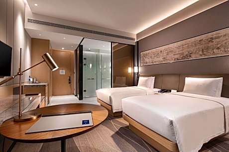 At DoubleTree by Hilton Suzhou Wujiang, exceptional service and top-notch amenities create a memorable experience for guests.Complimentary internet access is available in the hotel to ensure you stay connected during your visit.Amenities at car hire offered by DoubleTree by Hilton Suzhou Wujiang simplify the organization of your excursions, tourist activities, and other adventures in Suzhou. Complimentary parking is available for guests.Continuously receive the support you require through front desk amenities such as concierge service, luggage storage and safety deposit boxes.At the hotel, their tours can even assist you in booking tickets and securing reservations for leisure activities and adventures.At the hotel, utilize the convenient laundry service to maintain your preferred travel attire fresh, allowing you to pack lighter. Craving relaxation? In-room amenities such as room service and daily housekeeping allow you to maximize your time spent inside the room.Accommodations come equipped with all the conveniences required for a restful night's slumber. In certain chosen rooms, instant tea is conveniently available for your use. A delightful breakfast is the perfect way to begin your day, and at DoubleTree by Hilton Suzhou Wujiang, you can always indulge in a scrumptious meal on-site. Allow your journey to be free from the pangs of hunger! On-site eateries offer delicious and accessible meal choices. At DoubleTree by Hilton Suzhou Wujiang, guests can take pleasure in the delightful recreational amenities provided for their entertainment.Conclude your days in complete tranquility by visiting the steam room situated precisely at the hotel. At the hotel fitness center, you have the option to engage in your daily exercise routine or simply alleviate your jet lag by breaking a sweat.