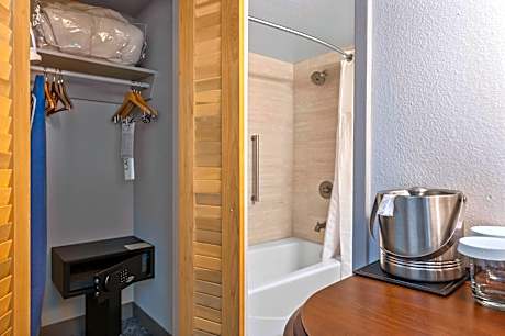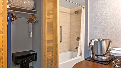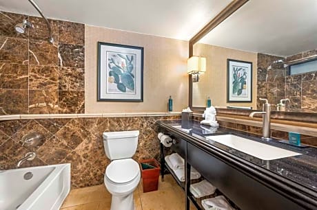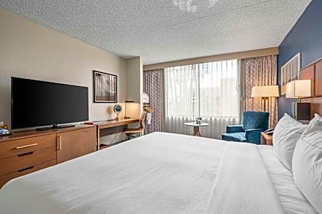 Guests are welcomed with thoughtfully designed rooms featuring upgraded bedding, Neutrogena bath products, and private balconies overlooking the hotel's courtyard. Each room is equipped with a flat-screen TV, providing a perfect space to unwind. The hotel's extensive recreational facilities include a spacious outdoor pool and a state-of-the-art fitness center with cardio equipment and free weights. For ultimate relaxation, indulge in a therapeutic massage available on-site.