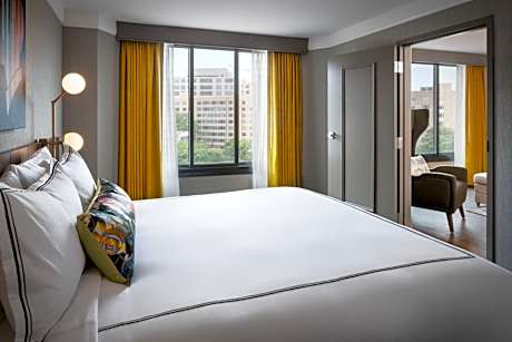 The Darcy Hotel, Washington DC is a 10 minute walk (located 2953 feet) from the White House and 1.2 mi from The National Mall. The property features 24-hour room service, a fitness center, business services, valet, daily gin tasting and bike rental. The Darcy offers guest rooms and suites with working desks, and 50” Smart TVs. Certain rooms include city views, rain showers, deep soaking tubs, living rooms and dining rooms. The property is located within walking distance of many nearby attractions, shops and restaurants. Families traveling can enjoy complimentary access to the Gear Shop with its bikes, strollers and scooters. The hotel also offers a children's backpack program for families to use to explore DC. The hotel also offers a Haberdashery, which is a program for guests to borrow or buy the latest fashion from Read Wall. Ronald Reagan Washington National Airport is 4.6 mi from the property.