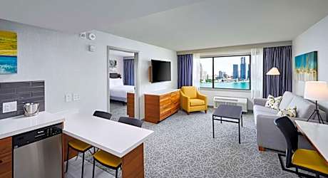Offering views of the Detroit River and Windsor’s skyline, this hotel is located one block from the Windsor Art Gallery and offers an indoor pool and on-site dining. The pool offers an indoor heated pool with panoramic views of the Detroit River skyline. The rooms at DoubleTree by Hilton Windsor, ON are furnished with warm colors and include cable TV. A coffee maker and large work desk are also provided. Free wired internet access is offered in guest rooms. A gym, and sauna are part of the facilities at this pet friendly DoubleTree by Hilton Windsor. ON Select common areas offer free Wi-Fi. River Room Restaurant, located on site, The River Room restaurant offers authentic Mediterranean cuisine from different regions. Nestled atop the DoubleTree Windsor Hotel, where culinary delight meets stunning views. The Windsor Arena and Caesars Windsor Casino are just a 15-minute walk from DoubleTree by Hilton Windsor. The Windsor Airport is a 20-minute drive from the hotel.