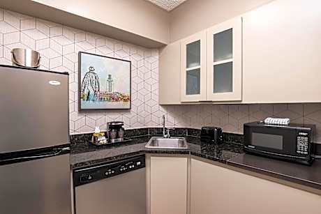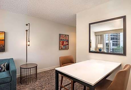 The full-service DoubleTree Suites by Hilton Austin Downtown Capitol hotel is located within walking distance of the Texas State Capitol and nearby downtown's most iconic destinations, including The University of Texas at Austin, the Moody Center, Sixth and Rainey Streets and the Warehouse District. Whether traveling for business or leisure, hotel guests can explore historical landmarks such as the Governor's Mansion and the LBJ Presidential Library, cheer on their favorite sports team at a local game or enjoy nature at its best with a variety of recreational outdoor activities. The hotel's convenient location offers easy access to I-35 and is within a 20-minute commute to the Austin-Bergstrom International Airport. The on-site ATX BARREL + BITES features indoor and outdoor dining with superb American and Southwestern cuisine, and the cozy ATX BARREL + BITES Lounge offers an intimate, relaxing atmosphere to enjoy snacks and spirits as an ideal way to end the day. Guests who stay at DoubleTree Suites by Hilton Austin Downtown Capitol can experience Texas-sized comfort and charm in one or two-bedroom suites with living/dining areas, kitchenettes and balcony views of the Texas State Capitol. High-speed wireless internet access is available throughout the hotel, a 24-hour fitness center overlooks a heated outdoor pool with a poolside lounge, and a warm chocolate chip cookie makes for a memorable stay.