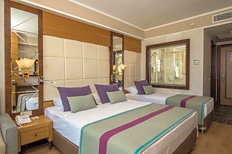 Located in Side, a 8-minute walk from Kumkoy Beach, Dream World Aqua provides accommodations with a seasonal outdoor swimming pool, free private parking, a fitness center and a garden. With a private beach area, the 5-star hotel has air-conditioned rooms with free WiFi, each with a private bathroom. The property features a sauna, evening entertainment and a kids' club. Guest rooms at the hotel are equipped with a flat-screen TV with satellite channels and a safety deposit box. Dream World Aqua has certain rooms that include a balcony, and each room has an electric tea pot. The breakfast offers buffet, Full English/Irish or American options. At the accommodation you'll find a restaurant serving International cuisine. Vegetarian, dairy-free and halal options can also be requested. Dream World Aqua offers a hammam. You can play table tennis, darts and tennis at the hotel, and the area is popular for cycling. Staff speak German, English and Turkish at the reception. Green Canyon is 17 miles from Dream World Aqua, while Aspendos Amphitheatre is 18 miles from the property. Antalya Airport is 40 miles away, and the property offers a paid airport shuttle service. License Number(s): 15548