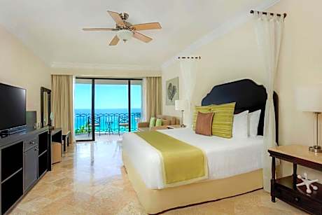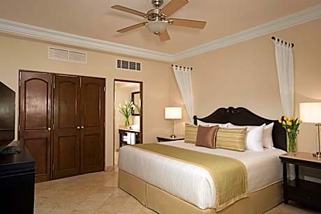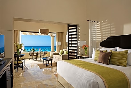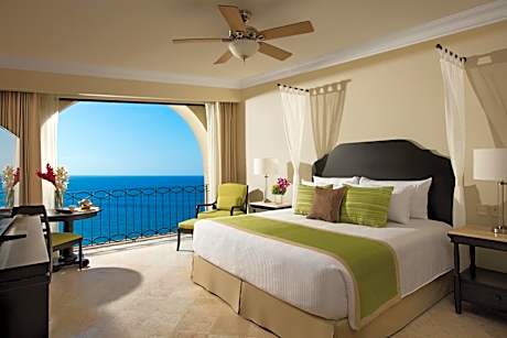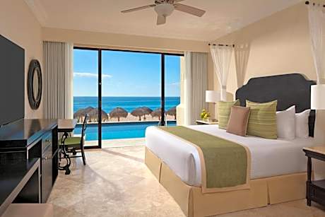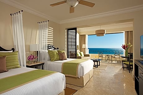 Each suite at Dreams Los Cabos Suites Golf Resort & Spa features a private terrace with stunning ocean views, a stocked minibar, and an iPod docking station. Marble bathrooms include separate bathtubs and showers, with slippers and bathrobes provided for added comfort.