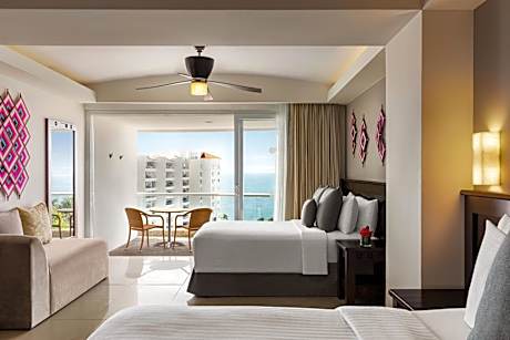 This Banderas Bay resort is located in Nuevo Vallarta, Mexico. The resort offers a full service spa and ocean views. The property provides a 26-inch flat-screen TV in every suite. Fiesta Americana Nuevo Vallarta All Inclusive suites include a mini-bar, MP3 docking station and coffee maker. The suites feature bathrobes and slippers. Suites are equipped with a balcony with a hot tub. Guests at the Fiesta Americana Nuevo Vallarta All Inclusive can dine in one of 5 restaurants. The Portofino serves Italian cuisine. Oceana offers seafood. The Fiesta Americana Nuevo Vallarta All Inclusive offers a full service spa and gym. Guests can swim in the on-site pools or take a trip to the nearby golf course. The Fiesta Americana Nuevo Vallarta All Inclusive is located near the historic town of Puerto Vallarta. Family friendly hotel, please see fine print for additional information.