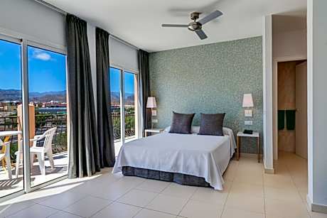 Mirador Maspalomas by Dunas is located in the Sonnenland area of Maspalomas, Gran Canaria. It features 2 outdoor pools with loungers, a hot tub, and rooms with private balconies. All rooms at Mirador Maspalomas by Dunas come with tiled floors and light furniture. Each room is equipped with a ceiling fan, flat-screen TV with international channels, and a balcony or terrace. Free WiFi is available throughout the property. Pool towels can be provided for an additional cost. The hotel’s restaurant serves a variety of Spanish and international dishes. Guests can also enjoy a poolside bar and a discotheque (open only in winter, from November to April). Children have access to a separate pool and a club with an entertainment program. Additional facilities include a pool table and a wellness center offering beauty treatments and massages for a surcharge. Playa del Inglés Beach and Playa Meloneras Beach are approximately 1.9 mi from the hotel. A free bus service runs 4 times a day to Playa Meloneras Beach. For those interested in watersports, a range of facilities is available, and there are 2 golf courses within 1.2 mi of the hotel.