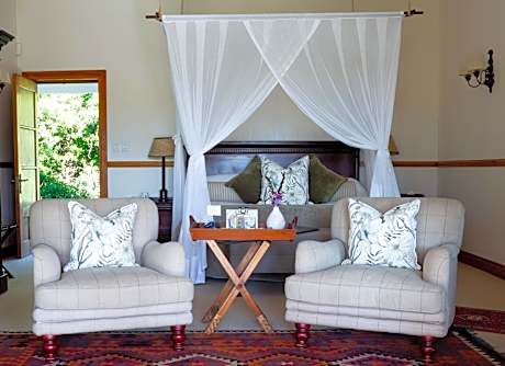 This family-run country house on the outskirts of St Francis Bay offers a lagoon-shaped pool surrounded by birdlife and gardens. All accommodations has a private patio and garden views. Dune Ridge offers cottages and suites, all individually decorated with dark wood furnishings. Each has an elegant private bathroom with a separate shower and bath. A breakfast buffet and light lunches are available daily in the country-style dining room. Barbecue facilities are also offered in the lush garden or by the outdoor pool. Guests at The Dune Ridge can enjoy surfing, mountain biking and whale watching in the surrounding area of Jeffreys Bay. For relaxation, the country house offers a library and an open-air boma. Tsitsikamma and Storms River are less than a 1-hour drive away, while Seal Point Reserve can be found within 1.9 mi. Port Elizabeth Airport and Plettenberg Bay are a 1.5-hour drive away.